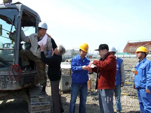 在慰問贈(zèng)送的儀式上,離休老干部代表73歲的陳澤說,以前,我們?yōu)榱舜蚪剑珖鞯氐臒嵫嗄曜叩揭黄。今天,為了世博建設(shè),你們從四面八方來到上海世博工地。我們的目標(biāo)都是為了祖國繁榮昌盛,F(xiàn)在雖然我們老了,做不動(dòng)了。但,我們還能做一些力所能及事。今天,我們來看望和慰問你們,就是為你們打氣、鼓勁。希望你們把世博場館建設(shè)得更好。陳澤老同志的講話獲得了世博建設(shè)者的陣陣掌聲。