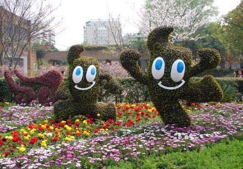 今年的上;ㄕ股俨涣烁魃ɑ艿臓幤娑菲G,而“世博”的主題讓它們更顯與眾不同。世博主題演繹區(qū)、世博花卉品種區(qū)、世博街景示范區(qū)都讓游客駐足;“中國館”在郁金香的襯托下顯得端莊宏偉,游客們紛紛拿出相機忙著與植物擺出的“海寶”合影;“小志”和它的家人則受到了孩子們的追捧。