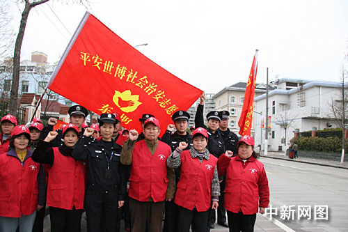 中新網(wǎng)上海4月19日電(徐云)精彩世博,平安先行。地處三林世博功能區(qū)域的東明路街道2007、2008年,分獲上海市平安社區(qū)、上海市及新區(qū)信訪系統(tǒng)先進(jìn)集體、上海市和新區(qū)煙草專(zhuān)賣(mài)管理“示范化”社區(qū)等稱(chēng)號(hào)。圖為其首支“迎世博社會(huì)治安志愿者隊(duì)伍”舉行宣誓儀式。完