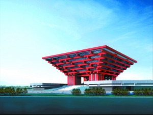 在上海市中心黃浦江兩岸,南浦大橋和盧浦大橋之間的濱江地區(qū),名為“東方之冠”的2010年上海世博會中國國家館正準(zhǔn)備進(jìn)行最重要的一道妝扮——在展館外立面上安裝“中國紅”的裝飾板。年底之前,“東方之冠”將全面竣工,作為永久性場館建筑屹立在黃浦江畔。