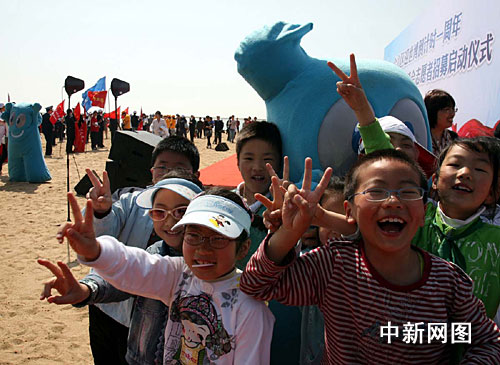 昨天下午,記者來到正在舉行2009世界沙灘排球巡回賽中國(guó)上海金山公開賽的上海市郊金山區(qū)城市沙灘,這里正在舉行金山區(qū)迎世博倒計(jì)時(shí)一周年暨世博志愿者招募啟動(dòng)儀式,現(xiàn)場(chǎng)吸引了來此觀賽和旅游的上萬名上海市民激情參與。
