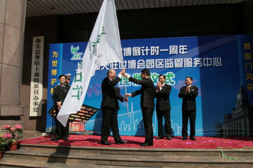 5月6日消息:5月1日,上海海關(guān)舉行迎世博倒計(jì)時(shí)一周年“上海海關(guān)駐上海世博會園區(qū)監(jiān)管服務(wù)中心”掛牌儀式暨“為世博護(hù)航,展國門風(fēng)采”文明服務(wù)宣誓活動。上海市政府副秘書長、上海市迎世博600天行動窗口服務(wù)指揮部常務(wù)副指揮沙海林和上海海關(guān)副關(guān)長于申共同為上海海關(guān)駐上海世博會園區(qū)監(jiān)管服務(wù)中心掛牌。沙海林向上海海關(guān)授予“迎世博、窗口行”行動旗幟,并向上海海關(guān)迎世博優(yōu)質(zhì)服務(wù)示范員代表頒發(fā)胸牌。