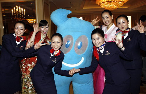 5月4日是“五四”青年節(jié),也是東航“凌燕乘務(wù)示范組”20周歲的生日。東航舉辦“暢想世博、凌燕高飛”大型慶典活動,以“與愛一起飛翔”為主題,用東航人的青春、熱情、才華、智慧,迎接世博會的到來。