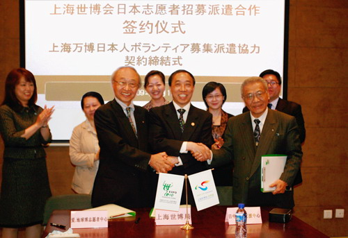 上海世博會(huì)志愿者招募工作已于5月1日正式啟動(dòng),面向全球招募七萬(wàn)園區(qū)志愿者與十萬(wàn)城市服務(wù)站點(diǎn)志愿者。目前,兩家機(jī)構(gòu)已合作成立了“上海世博志愿者協(xié)力實(shí)行委員會(huì)”,專門負(fù)責(zé)日本志愿者的招募派遣工作,以及對(duì)日本志愿者進(jìn)行上海世博會(huì)基本情況、中國(guó)國(guó)情、中文等方面的培訓(xùn)。