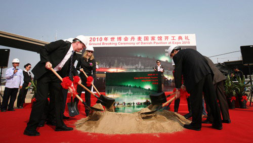 5月15日下午,上海世博會(huì)丹麥國(guó)家館在世博園區(qū)開(kāi)工建設(shè),丹麥館以“夢(mèng)想城市”命名,將邀請(qǐng)各國(guó)參觀者步入丹麥?zhǔn)降耐捠澜,體驗(yàn)丹麥的城市生活。上海世博會(huì)事務(wù)協(xié)調(diào)局局長(zhǎng)特別助理張?zhí)N杰、丹麥王國(guó)駐上海總領(lǐng)事何麗蘭(Susanne Hyldelund)和丹麥館項(xiàng)目總監(jiān)韓少江(John Hansen)等出席動(dòng)工儀式。