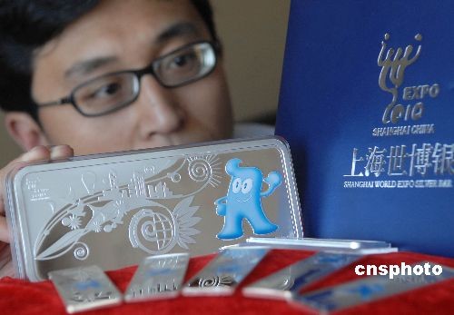 5月22日,由上海世博會(huì)事務(wù)協(xié)調(diào)局授權(quán)、中國(guó)印鈔造幣總公司鑄造發(fā)行的一款以世博會(huì)為題材的銀條——上海世博銀將于近日在交通銀行指定網(wǎng)點(diǎn)銷(xiāo)售。據(jù)了解,本次即將發(fā)售的上海世博銀以上海世博會(huì)為題材,設(shè)計(jì)上則融入了世博會(huì)吉祥物、地球與花朵、城市場(chǎng)景等眾多元素,由人和城市場(chǎng)景共同組成“EXPO”圖案也完美體現(xiàn)了此次上海世博會(huì)的“城市”主題。中新社發(fā) 遠(yuǎn)舟 攝