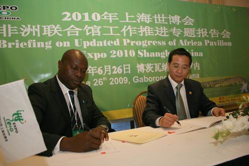 會(huì)議期間,上海世博會(huì)組織者還與博茨瓦納簽署了上海世博會(huì)參展援助協(xié)議。