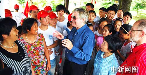 中新網(wǎng)寧波7月5日電(記者 徐小勇 通訊員 徐猛挺)“Better City, Better Life;Welcome to Tengtou”(城市讓生活更美好;滕頭歡迎你)。在浙江省奉化滕頭村的外語角,來自寧波諾丁漢大學(xué)的外教們正在教村民說外語。