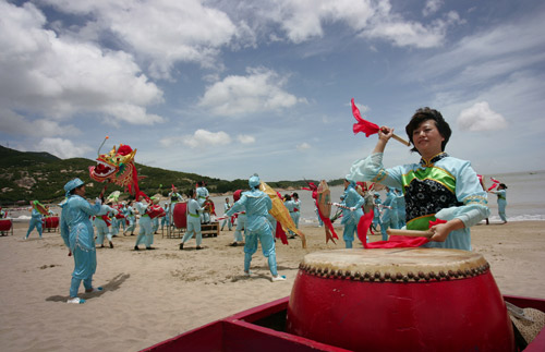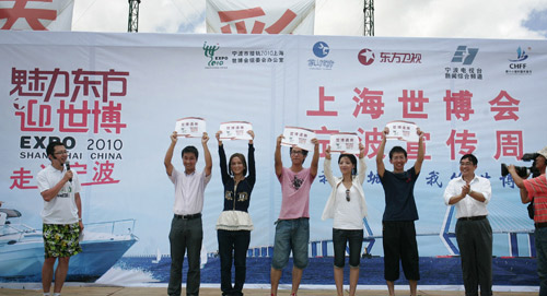 11日上午,“魅力東方迎世博--走進寧波”大型直播活動在象山松蘭山海灘舉行。直播活動全面報道了寧波市迎接2010年上海世博會的情況,各類主題剪紙表演、專家訪談、小朋友百米兒童畫、沙灘趣味運動會、手語表演、民俗演出等活動,讓夏日的海灘活力十足。上海世博局國內(nèi)參展顧問黃耀誠現(xiàn)場向5位幸運市民頒發(fā)了世博請柬,送出了來年之約。