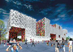 韓國(guó)文字不同于其他文字,一般人即便不識(shí)卻很容易辨認(rèn)。韓國(guó)國(guó)家館設(shè)計(jì)師正是巧妙地利用不同膚色人群的共同認(rèn)知,用韓文來“建造”展館:遠(yuǎn)觀展館,由幾個(gè)碩大的韓文字母連接而成;近看外墻,則為無(wú)數(shù)凹凸有致的韓文字母?梢哉f,韓國(guó)國(guó)家館是用韓文符號(hào)組成的抽象建筑物,是一個(gè)“空間化符號(hào)”,韓國(guó)文字的幾何學(xué)特性從建筑學(xué)角度被巧妙地重新詮釋,成為韓國(guó)國(guó)家館的獨(dú)特構(gòu)成要素,并因此成為世博園區(qū)的一個(gè)奇特景觀。