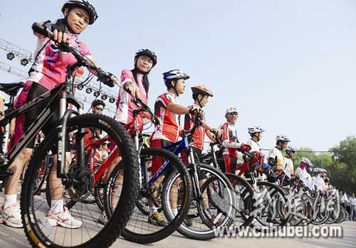 昨日(9月6日)上午,21名上海世博會志愿者帶著吉祥物“海寶”,騎著單車抵達武漢,并在漢口江灘與江城志愿者共同舉行“迎世博·城市演繹——長江萬里行”活動武漢站儀式。