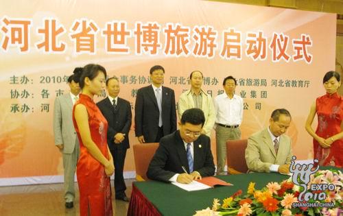 上海世博會河北世博旅游啟動儀式12日在石家莊市舉行。啟動儀式上,上海世博局與河北康輝國際旅行社正式簽署了世博游協(xié)議。