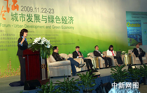 11月22日,世博論壇——城市發(fā)展與綠色經(jīng)濟(jì)在上海松江開(kāi)幕。在當(dāng)天下午的專題論壇上,美國(guó)奧克蘭市市議會(huì)議長(zhǎng)簡(jiǎn)·布萊尼、美國(guó)圣安東尼奧市綠色工作委員會(huì)主席萊瑞·金、中國(guó)信陽(yáng)市市長(zhǎng)郭瑞民、美國(guó)庫(kù)比蒂諾市副市長(zhǎng)胡宜蘭、中國(guó)洛陽(yáng)市市長(zhǎng)郭洪昌等中外城市管理者同臺(tái)熱議“綠色經(jīng)濟(jì)”。張亨偉 攝