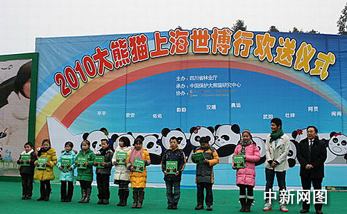 5日上午8點,“2010大熊貓世博行”歡送儀式在雅安碧峰峽基地舉行,儀式后10只世博熊貓于9:30左右啟程前往成都,將于下午13:30-14:00之間從成都雙流機(jī)場乘專機(jī)飛往上海。