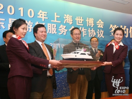 上海世博會(huì)事務(wù)協(xié)調(diào)局副局長(zhǎng)黃健之在簽約儀式上表示,東昌游艇公司獲得授權(quán)的2艘動(dòng)力游艇作為世博會(huì)指定游艇,將主要用于滿足世博游客的高端需求,希望東昌游艇公司與上海世博局緊密合作,把游艇的安全管理放到首位,為世博游客提供最優(yōu)質(zhì)的服務(wù)。