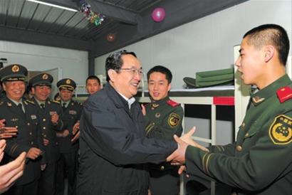 走進(jìn)戰(zhàn)士營(yíng)房,俞正聲等認(rèn)真察看宿舍設(shè)施,仔細(xì)檢查床上的被褥和戰(zhàn)士的冬衣,并與戰(zhàn)士們圍坐在一起嘮起了家常。俞正聲一一詢問(wèn)戰(zhàn)士們的家鄉(xiāng)在哪?伙食夠不夠好?得知很多戰(zhàn)士來(lái)自北方,俞正聲說(shuō),大家遠(yuǎn)離家鄉(xiāng)在上海執(zhí)行任務(wù),請(qǐng)向你們的家人轉(zhuǎn)達(dá)我們的問(wèn)候和祝福。俞正聲叮囑有關(guān)部門(mén)要千方百計(jì)做好后勤服務(wù)保障工作,為部隊(duì)解決實(shí)際困難,為部隊(duì)執(zhí)行任務(wù)做好堅(jiān)強(qiáng)后盾。(記者 繆毅容)