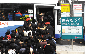 浦東公交此次共投放了48輛車(chē),每分鐘發(fā)一班,但由于道路交通擁堵,幾乎車(chē)車(chē)滿載。駕駛員反映,前幾天從龍陽(yáng)路站到張江高科站只需十幾分鐘,今早卻要花40分鐘。芳甸路路口,進(jìn)入張江高科園區(qū)的第一個(gè)轉(zhuǎn)彎處,車(chē)輛遇紅燈往往要等上三輪才過(guò)得去。9時(shí)10分,記者在龍陽(yáng)路站看到,出來(lái)?yè)Q乘公交的人還是絡(luò)繹不絕。