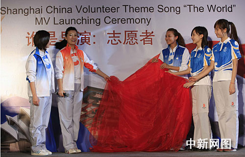 世博會(huì)志愿者主題歌《世界》由王平久作詞、何沐陽(yáng)作曲,譚晶演唱,以擁抱和微笑詮釋志愿精神。