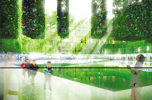 “建筑內部的綠色立體園林,也使用了可降解、可循環(huán)的材料,以盡可能達到最大限度的環(huán)保。這些綠色的植物,除了可以讓人們親近自然,還能夠幫助調節(jié)室內溫度,讓參觀者更加舒適。屋頂?shù)奶柲茈姵匕,則提供了清潔而免費的能源!狈娇烧f。