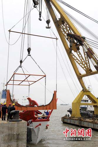 據(jù)悉,“遣唐使船”從2009年9月開始建造,3月31日在張家港完成下水調(diào)試,今天離港的“遣唐使船”抵達大阪港后,將按照唐朝中日交流航線,5月份從日本大阪港出發(fā),于6月初駛往上海世博會會館,進行展覽。