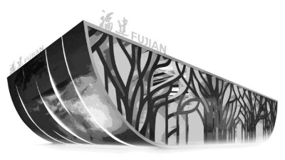 福建地處祖國東南沿海,面向臺灣海峽,依山傍海,擁有豐富的生態(tài)資源和漫長的海岸線。因此,福建館整體外觀設(shè)計為船形,以“綠、藍(lán)、白”為主色調(diào),正面為綠色榕樹造型,兩側(cè)船頭為藍(lán)色大海影像墻,頂部為白色橫梁,充分體現(xiàn)福建山中有城、城中有山,城海相連、海城一色的景象。整個展館像一艘在臺灣海峽中乘風(fēng)破浪的“生態(tài)船”,展現(xiàn)了福建作為綠色大省的風(fēng)采。