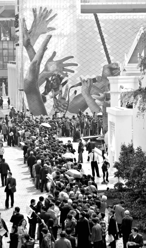 拿到中國館預約券的游客欣喜,沒拿到的也十分平和。錢先生夫婦9時45分入園時,中國館預約券已發(fā)放完畢,他們就在亞洲廣場上的預約機上預約了主題館的參觀。“中國館反正是永久性建筑,以后再來看也不遲,”同樣未能拿到預約券的李先生告訴記者。
