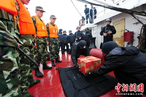 中新網(wǎng)舟山4月27日電(記者 趙曄嬌 通訊員 包能偉)昨天下午2時,浙江省舟山市定海區(qū)公安、海事、港航、海洋與漁業(yè)、邊防等多部門聯(lián)合舉行“清!笔啦┌脖B(lián)合演練。本次模擬警情為一名在定海農(nóng)村宕口做爆破員的犯罪嫌疑人,私自截留了10公斤炸藥,企圖帶往上海金山幫助一不符合爆破條件的工地進行爆破作業(yè)。