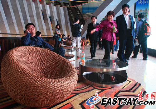 以“崛起的大國(guó)”為主題的南非館這次完全舍棄了野生動(dòng)物、美麗風(fēng)光等常態(tài)化展示,而是用一個(gè)球形的視頻墻占據(jù)在展館中央,四周圍放置著竹編的各式藤椅。負(fù)責(zé)籌建和部分設(shè)計(jì)的南非館的中方負(fù)責(zé)人黎先生告訴東方網(wǎng)記者,由于南非館將在世博會(huì)期間進(jìn)行五大主題的展示,“只有視頻能夠最好展現(xiàn)出來!