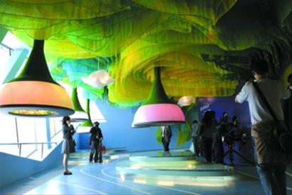 輕輕觸摸像蘑菇一樣的植物,感覺(jué)涼涼的、軟軟的;葉片上垂下長(zhǎng)長(zhǎng)的絲線(xiàn),像白色的觸須……這是英國(guó)館里展示的“未來(lái)植物”。工作人員介紹說(shuō),將來(lái)可讓蘑菇狀植物粘附于室內(nèi)墻壁上,發(fā)揮吸音功能,降低噪聲;而垂下絲線(xiàn)的植物更加神奇,如將犯罪嫌疑人的基因植入這種植物體內(nèi),此后一旦檢測(cè)到相同的基因,植物就能自動(dòng)發(fā)出聲音報(bào)警。等科學(xué)家的這些研究成熟后,看似神奇的童話(huà)將變?yōu)楝F(xiàn)實(shí)。