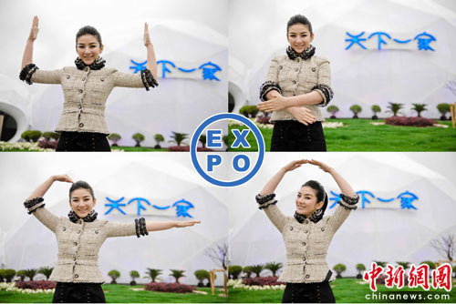 中新網(wǎng)5月11日電 作為“世博手勢形象大使”,同時也是上海女孩,黃奕日前來到世博館“天下一家”未來館門口,拍攝一組手勢大片,身體力行教大家如何演繹EXPO的含義。