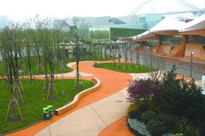 世博公園在新材料、新技術(shù)上的應(yīng)用也走在現(xiàn)有大型綠地的前列。整座公園沒有使用一根原生木材,一塊原生石材,全部采用再生材料來替代,體現(xiàn)未來“綠色城市”的理念。