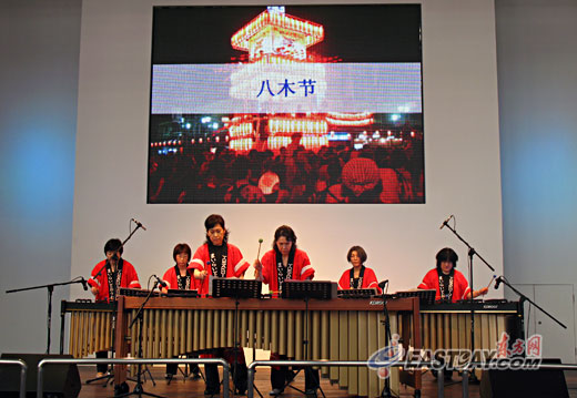 東方網(wǎng)記者向場上工作人員了解到,在日本產(chǎn)業(yè)館,每天都會上演四場音樂會,時間分別為11:00、13:30、16:00和18:30,諸多來自日本本土的專業(yè)級音樂團體將為觀眾帶來風(fēng)格迥異的音樂節(jié)目,且每周都有不同的樂團前來獻演。在這里,藝術(shù)家們將用或民族、或世界的樂器演奏中日等國的民族樂曲,而本周的節(jié)目將由日本著名的馬林巴樂團“北星會”出演。