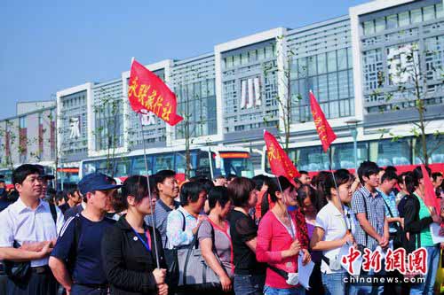中新網(wǎng)張家港5月25日電(李克祥)“放眼看世界,享受新生活。”今天清晨,以此為主題的“萬人游世博”在張家港永聯(lián)村正式啟動,由350名村民職工代表組成的首發(fā)團(tuán),登上開往上海世博園區(qū)的“幸!贝蟀,實(shí)現(xiàn)不出國門的“出國”開眼界之旅。