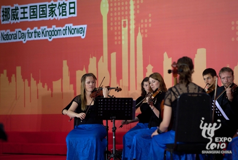 儀式上,特隆赫姆獨(dú)奏家樂(lè)團(tuán)帶來(lái)了精彩表演。據(jù)悉,在今晚的挪威館日文藝演出中,音樂(lè)大師譚盾將與挪威少女小提琴獨(dú)奏家Hemsing、特隆赫姆獨(dú)奏家樂(lè)團(tuán)及特隆赫姆交響樂(lè)團(tuán)合作,帶來(lái)譚盾全新創(chuàng)作的小提琴協(xié)奏曲《愛(ài)的三次方》的中國(guó)首演,這部音樂(lè)作品融合了搖滾嘻哈與京劇,但又具有古典音樂(lè)的形式。同時(shí),“神秘園”也將參與今晚的文藝演出,屆時(shí)觀眾將聆聽(tīng)到《大自然的賦予》的優(yōu)美旋律,這是由神秘園的靈魂人物、作曲家羅爾夫·勞弗蘭(Rolf Lvland)為挪威館特別創(chuàng)作的管弦組曲,長(zhǎng)約15分鐘。