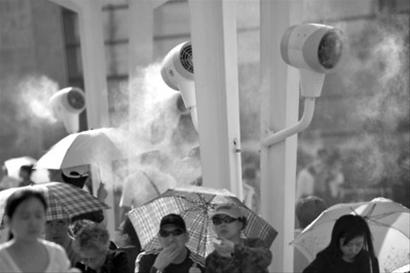 這些天,申城的最高溫度不斷上升,為應(yīng)對高溫,世博園區(qū)的噴霧降溫裝置已全部啟用。那么,這種降溫設(shè)備包含了多少科技含量?在世博會后,它們是否將在上海推廣?昨天,記者采訪了“世博軸噴霧降溫技術(shù)應(yīng)用可行性分析”項目負責人、上海理工大學(xué)黃晨教授。她說,世博噴霧器適合上海氣候特征,將在社區(qū)、學(xué)校等公共場所推廣。