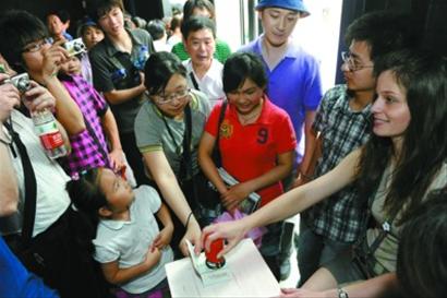 游客們親切地叫她“美女”,只是不知道她的名字。昨天采訪中,這位“最美敲章員”說,她叫米娜,之所以投身世博會工作,是因為熱愛中國的文化。