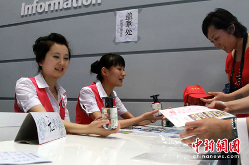 中新社上海6月24日電 題:世博蓋章花絮:斐濟(jì)館長親自上陣 石油館美女溫柔引導(dǎo)