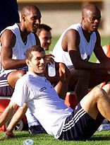 如果說四年前的世界杯得主法國隊靠水泄不通的防守奪得世界杯,本身還有缺點的話,那么就是他們的鋒線還有一些問題。不過,現(xiàn)在這個問題隨著亨利、特雷澤蓋以及阿內(nèi)爾卡的成熟,已經(jīng)得到了很好的解決?梢哉f,現(xiàn)在的法國隊已經(jīng)接近完美。在中場,攻擊型中場齊達內(nèi)和防守型中場維埃拉構(gòu)筑的"鋼腰",以及由德塞利、圖拉姆和利扎拉祖聯(lián)手的"鐵壁"則能充分顯示出法國隊的真正價值。正是這"力"與"巧"的諧調(diào)為沒有間歇的攻擊、攻守兼?zhèn)涞母邏鹤闱蛞约敖z絲相扣的組織能力提供了可能性。