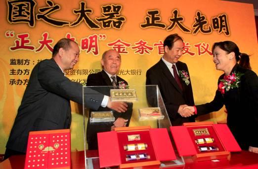 故宮博物院、中鈔國(guó)鼎投資公司、中國(guó)光大銀行及北京恒美瑞文化發(fā)展有限公司,共同推出的“正大光明”金條