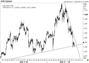 因投資者擔(dān)憂愛爾蘭財政問題惡化并可能想歐元區(qū)蔓延,市場避險情緒繼續(xù)升溫,推升美元繼續(xù)走強(qiáng),美指突破79創(chuàng)下9月28日以來的新高。中國緊縮傳聞愈演愈烈,大宗商品價格紛紛跳水,原油價格近期跌幅逾7%。周二金價一度跌破1330美元,跌幅超過2%。