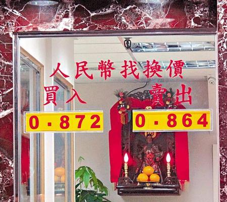 灣仔許氏兄弟找換店的一名主管昨稱,市場上有人在搶購人民幣,昨天的港元兌人民幣兌換價是每1000港元只可以兌換864元人民幣,較人民幣匯改后的高位還要兌換少2元。該主管預計下星期情況將持續(xù)。當記者前往在駱克道的恒豐兌換店要求兌換1萬元人民幣時,店員要求記者在第二天早上再回來。有深圳兌換商亦表示在港的人民幣現(xiàn)鈔短缺,由于很多財險留人民幣望升值,并指人民幣供應較G20會議舉行前還低。