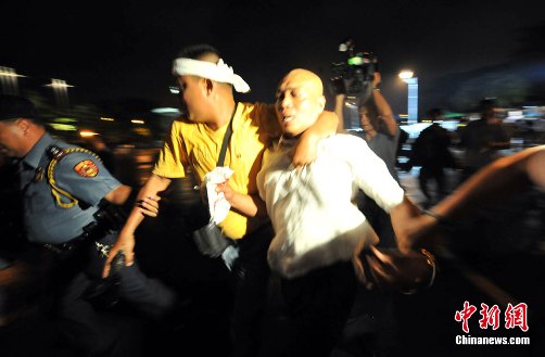 中新網(wǎng)8月24日電 據(jù)香港明報報道,香港旅游團在菲律賓遭挾持,香港傳媒紛紛派員趕赴馬尼拉采訪事件,務求掌握第一手資料;至23日晚形勢急轉直下,每次傳出槍聲,記者都要爭相走避,加上當時環(huán)境黑暗及下著大雨,情況非常混亂,無線電視一名工程人員在流彈橫飛下腹部受傷,幸只是擦傷未有大礙,他繼續(xù)緊守崗位,直至完成任務;有攝影記者則誤踏水深逾1呎的水洼致全身濕透,連攝影器材也損壞。