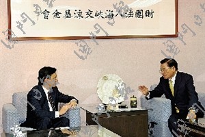譚俊榮二十四日下午在臺北禮節(jié)性拜會;鶗麻L江丙坤,受到熱情接待。雙方深入交換了深化澳臺關(guān)系發(fā)展,促進兩地文化、觀光、旅游、經(jīng)濟等交流的意見。江丙坤明確表示,支持特區(qū)政府推動澳臺關(guān)系發(fā)展。愿意發(fā)揮;鶗淖饔煤陀绊懥,協(xié)助特區(qū)政府與臺灣有關(guān)方面磋商在臺設(shè)立辦事處及澳門高校學歷認可等事宜。