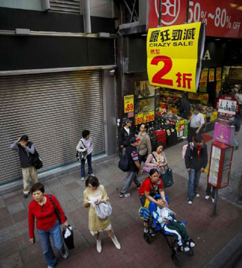 英國(guó)媒體6日刊登了一篇曾蔭權(quán)的訪(fǎng)問(wèn)報(bào)道,內(nèi)容談到特區(qū)政府如何應(yīng)對(duì)國(guó)際金融海嘯的沖擊。曾蔭權(quán)說(shuō),他從未見(jiàn)過(guò)如此急速的經(jīng)濟(jì)衰退,預(yù)計(jì)經(jīng)濟(jì)收縮可能較特區(qū)政府預(yù)期的2%至3%為高!氨灸昵皟蓚(gè)月的出口下跌接近四分之一,這大概是自二次大戰(zhàn)以來(lái)最厲害的跌幅!彼m(xù)道,自90年代中國(guó)成為“世界工廠(chǎng)”開(kāi)始,轉(zhuǎn)口貿(mào)易已成為香港其中一項(xiàng)最重要的“經(jīng)濟(jì)引擎”。