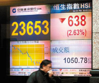 中新網(wǎng)1月31日電 據(jù)香港媒體報道,憂慮美國減息幅度或遜于預期等因素,令港股30日在期指結算日出現(xiàn)先升后急回,恒生指數(shù)倒跌638點收市,報23653點,再考驗牛熊分界。香港證券界相信,若美國減息半厘,港股有望反彈;若僅減息1/4厘,港股或再跌。