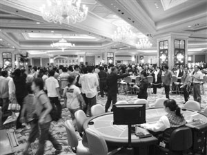 中新網(wǎng)3月24日電 據(jù)澳門日?qǐng)?bào)報(bào)道,澳門今年首兩月賭稅高達(dá)68億元,意味賭收超過170億元。倘首兩月強(qiáng)勁走勢(shì)持續(xù),全年賭收或可達(dá)1000億。有學(xué)者認(rèn)為,博彩市場(chǎng)做大后,貴賓廳豪賭有上升趨勢(shì),擔(dān)心澳門與休閑度假模式漸行漸遠(yuǎn),而中介人業(yè)務(wù)規(guī)范仍有待加強(qiáng)。