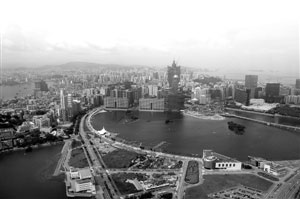 圖為西灣湖畔葡京、永利、星際、金沙、美高梅賭場連成一片。 中新社發(fā) 史利 攝