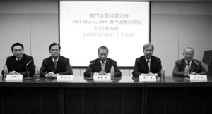 澳門金業(yè)同業(yè)公會(huì)會(huì)長(zhǎng)藍(lán)鏵纓、理事長(zhǎng)李子豐、副理事長(zhǎng)高忠杰、監(jiān)事長(zhǎng)謝耀宇及秘書長(zhǎng)尹君樂主持10日舉行的新聞發(fā)布會(huì)。他們表示,過去澳門會(huì)展軟硬件設(shè)施不足,隨著拉斯韋加斯式綜合休閑度假理念延伸來(lái)澳,會(huì)展硬件條件已具備。與香港珠寶制造業(yè)商會(huì)合辦今屆國(guó)際珠寶展,希望借著跨地區(qū)合作吸收及學(xué)習(xí)他人的經(jīng)驗(yàn)。