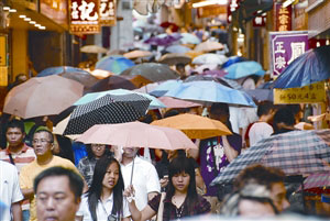 內(nèi)地自由行客來澳,喜歡到商場購物。某大型百貨公司負責(zé)人指出,收緊政策后,人流減少2%,但不排除與連月不斷下暴雨有關(guān),加上商場6月先后有減價活動,故對生意額影響輕微。他強調(diào),倘以去年6月生意額作比較,今年同月則錄得升幅。