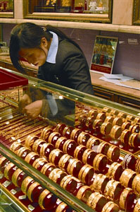 內(nèi)地收緊自由行,珠寶首飾貴價品銷情同受影響,連鎖金飾店負責(zé)人指出,自由行收緊后,6月起生意額即見下跌,起碼跌二至三成。一般而言,內(nèi)地客購買珠寶首飾,廣東客消費力稍遜北方客,前者人均消費額有三四千元,后者則達五六千元,主要看購買的貨品類別而定。